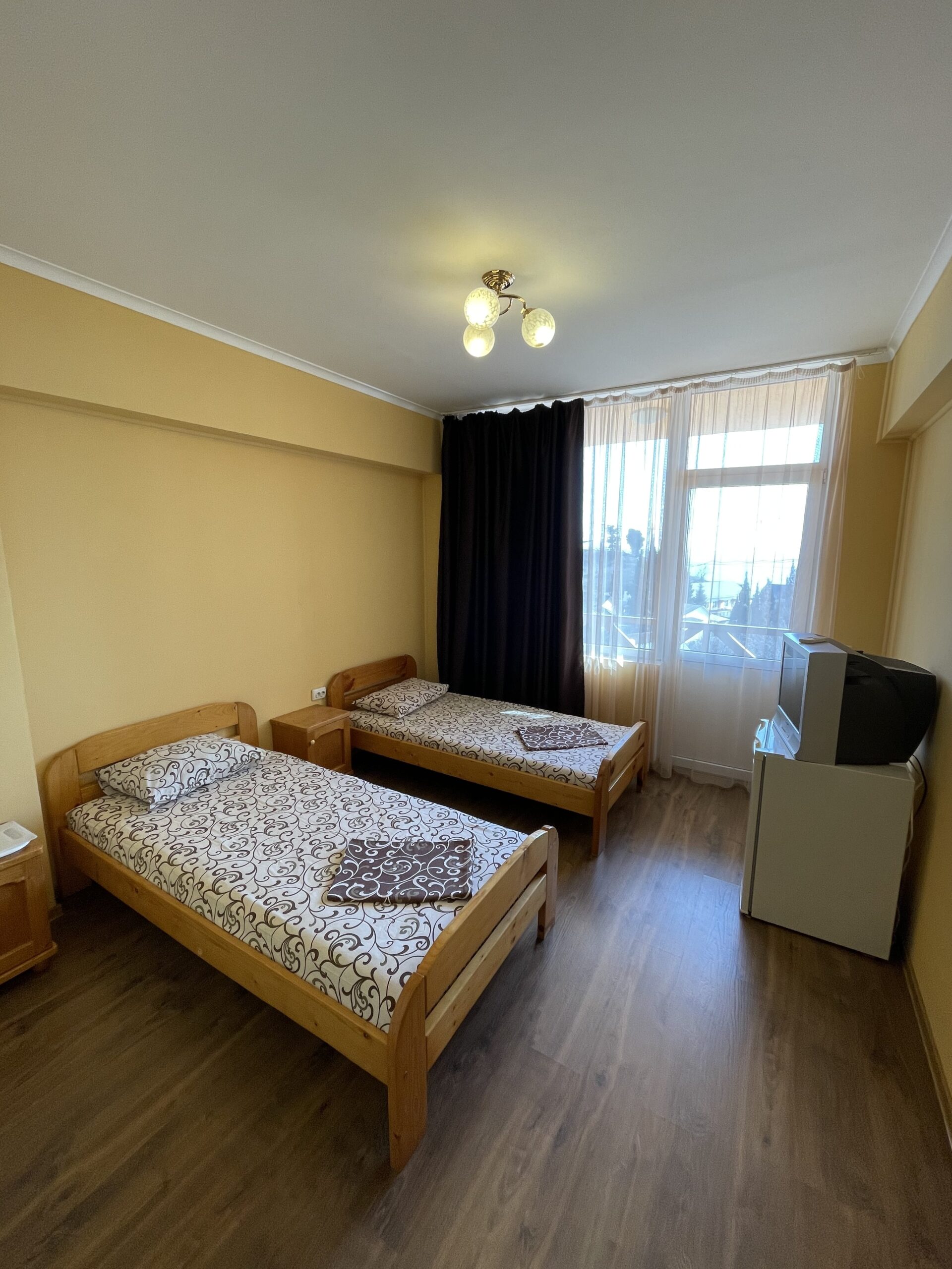 Отдыхали в гостинице «Таврида» семьей, 4 человека. Поселили в большом номере ( 2 комнаты и ванная)с отличной террасой и видом на кипарисы и море. Номер чистый, уборка ежедневная, воды горячей много ( в других гостиницах заканчивается так как бак). В номере есть все как заявлено: фен, чайник,холодильник и тд. Море и набережная совсем близко, 2 мин 😄.Рядом есть ресторанчики на любой вкус , наш любимый «Брынза». На набережной кафешки с мороженным и напитками . Если пройти чуть дальше рестораны подороже , скажем так с претензией на высокую кухню , в общем голодными мы не были . Магазин так же есть рядом и ассортимент не плохой .Пляж галька, глубина почти сразу , лежаки бесплатные есть , а вот сама «Таврида» предоставляет набор полотенец для пляжа . Огромный плюс гостиницы ,своя парковка , до неё идти 2 мин. В общем хочется сказать только «Спасибо» за наш отдых.
