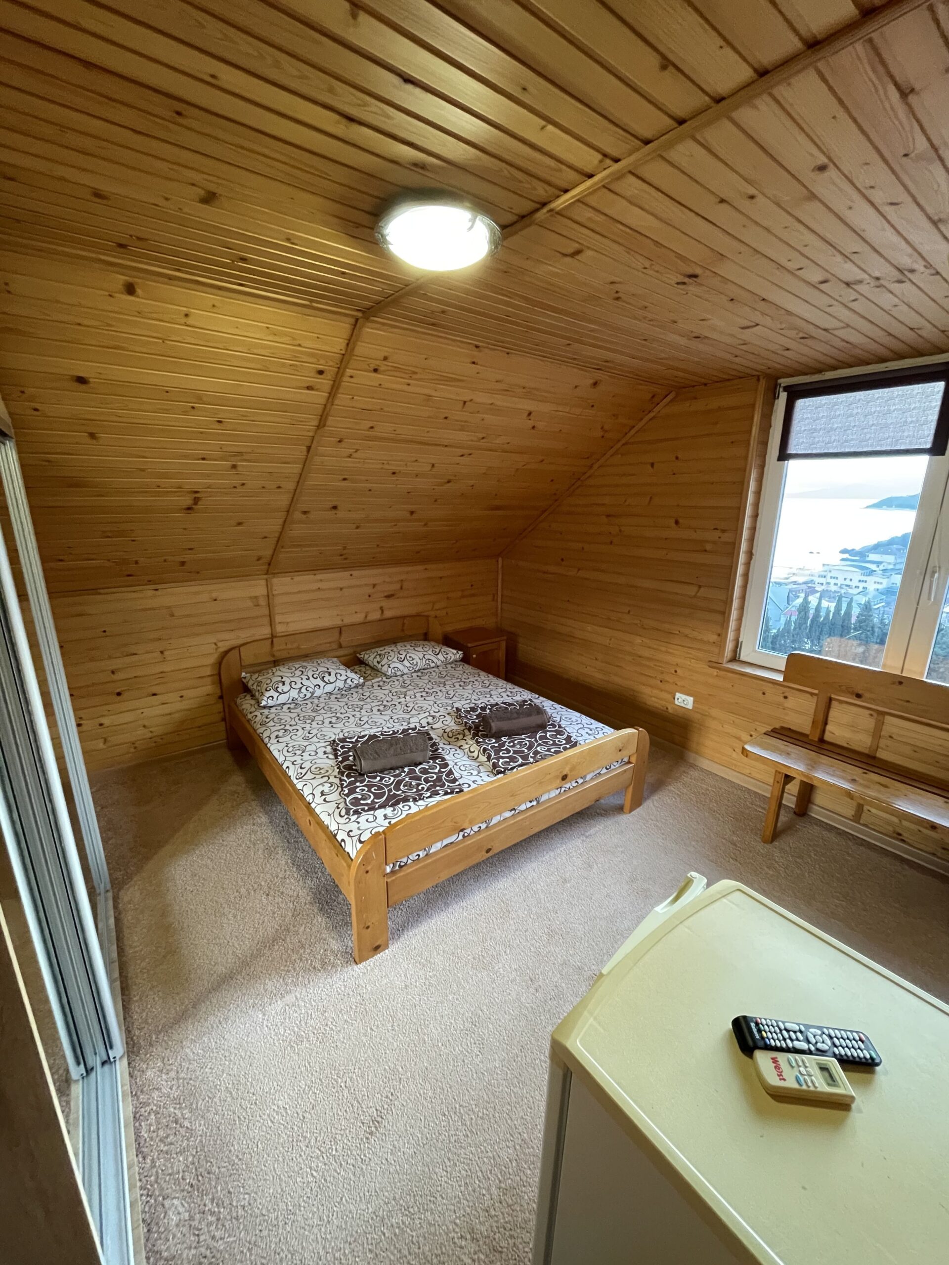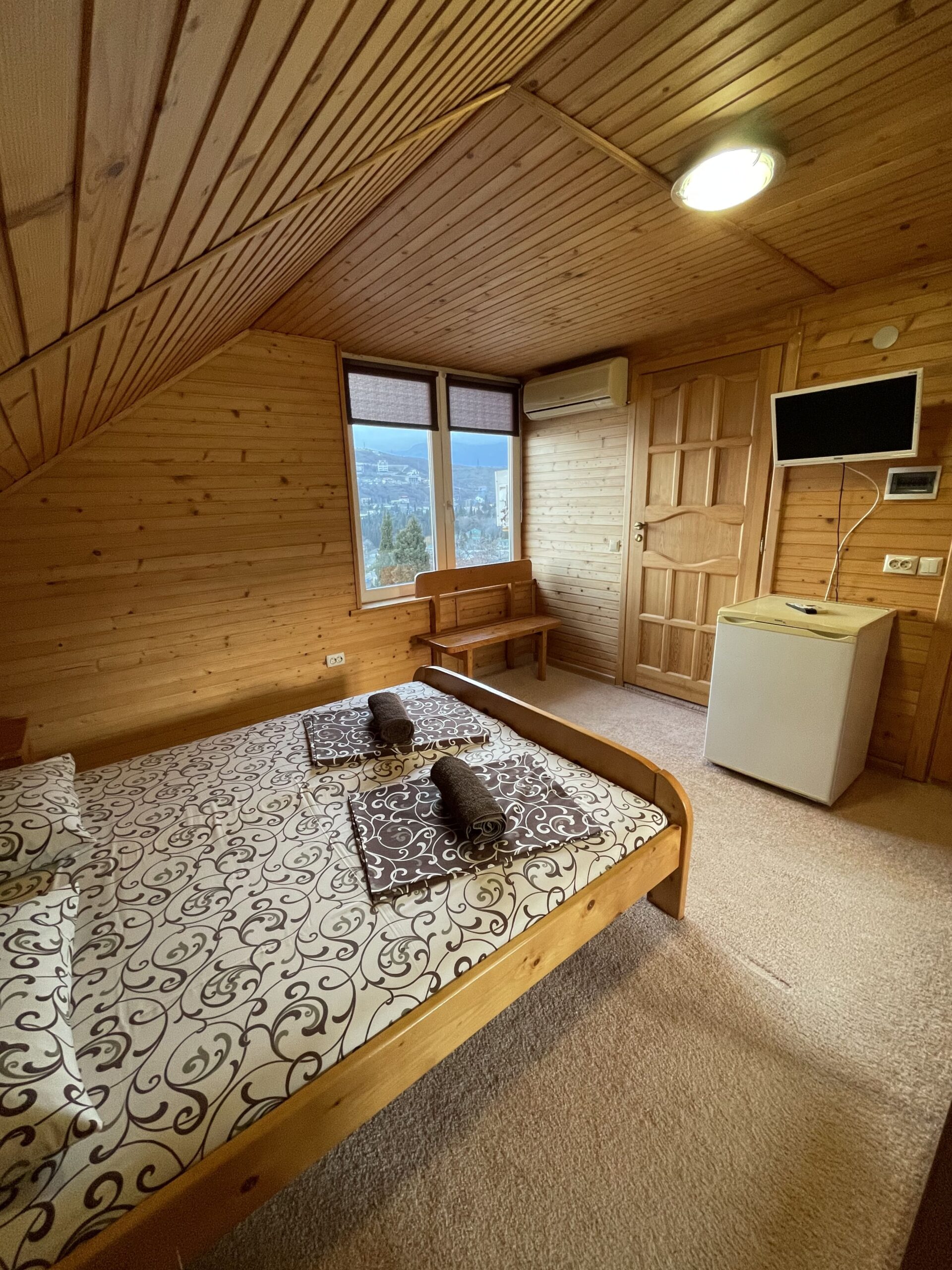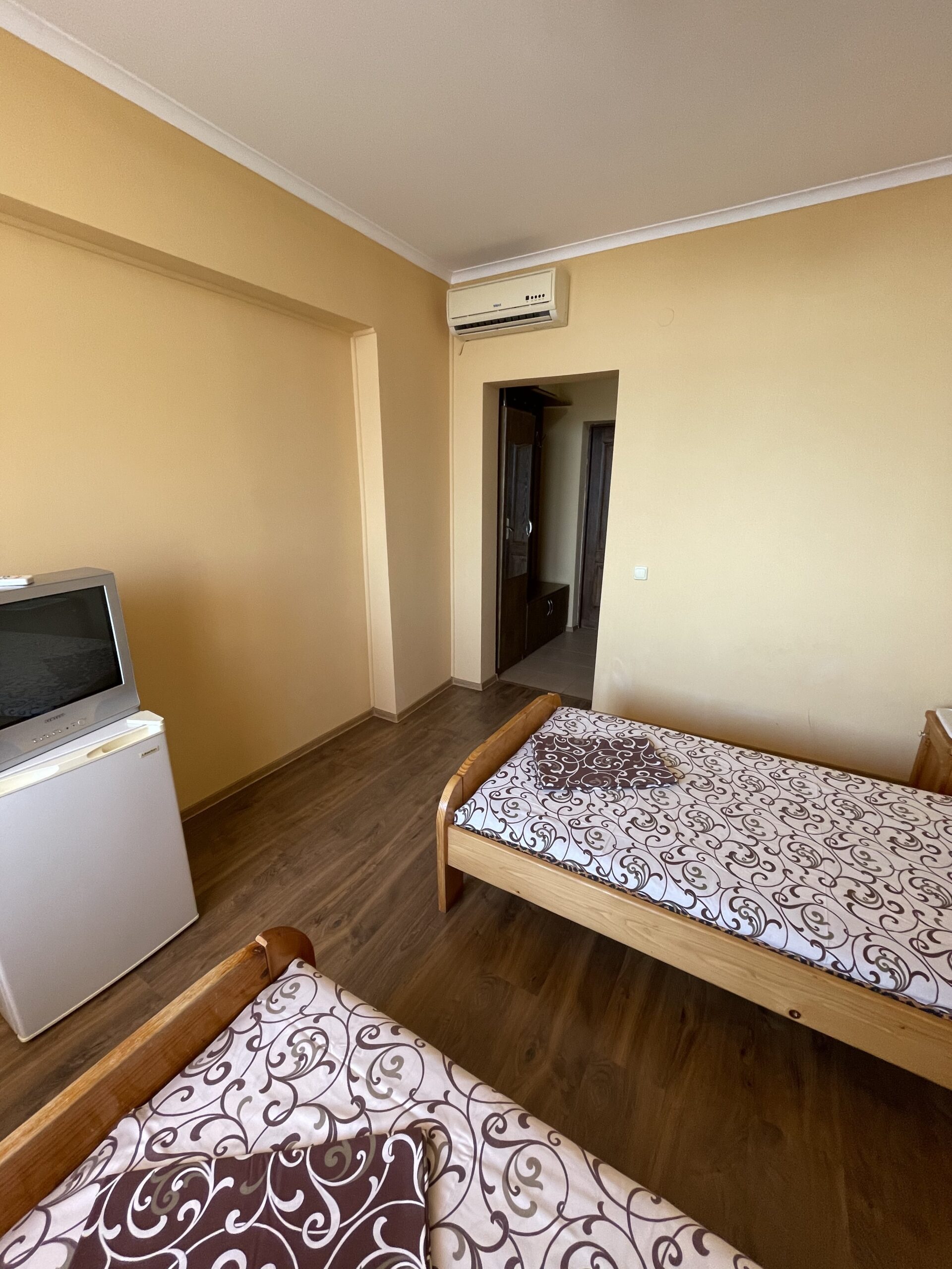 Мы отдыхали в ГД Таврида с 10 по 21 сентября 2022 года. Искали уединённое место в Крыму..... Могу смело рекомендовать ГД Таврида. Расположение, прямо скажем "козырное"- 3 минуты по ступеням вниз и мы на пляже, под навесом с лежаками. У нас был улучшенный, большой номер ( N 8 ) с балконом и видом на море. Номер прекрасный, просторный, матрас- отличный. Санузел с хорошим напором, с хорошим сливом. На 3 этаже - кухня. Холодильник, плита, микроволновка, красивая посуда, сковороды, кастрюли, столовые приборы... Наполнение очень достойное! (кстати, небольшо холодильник есть и в номере).